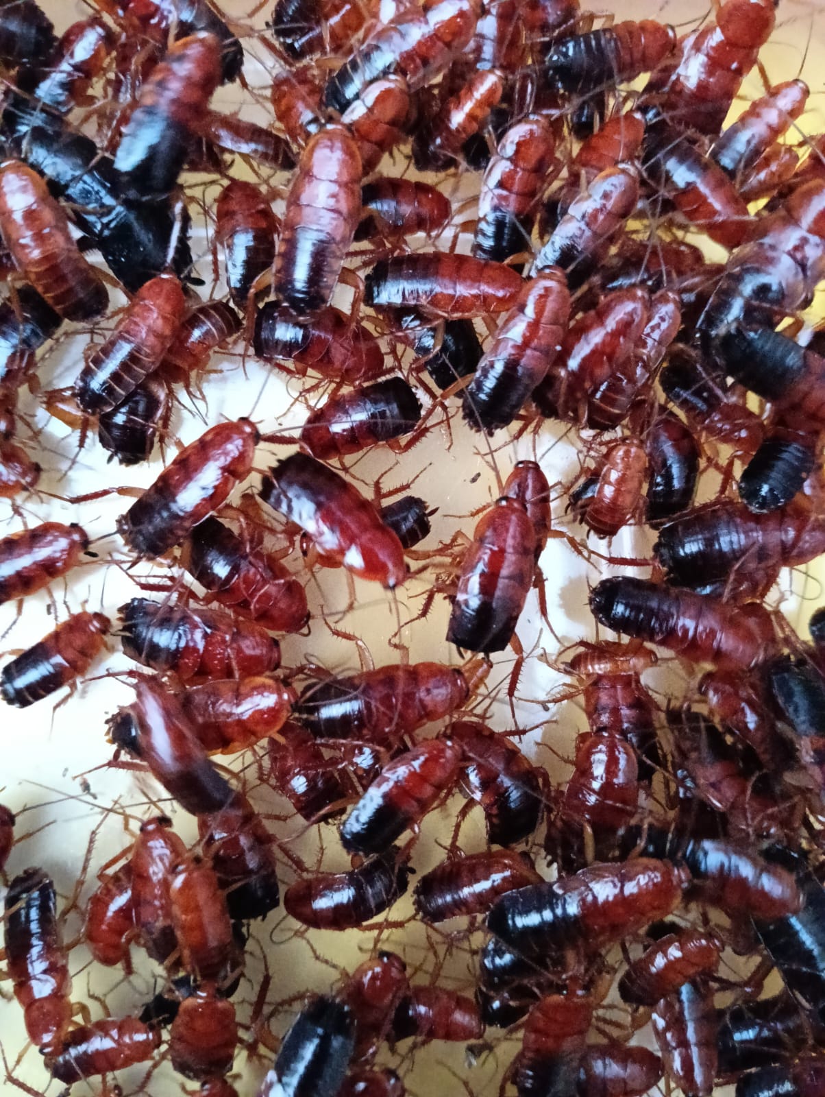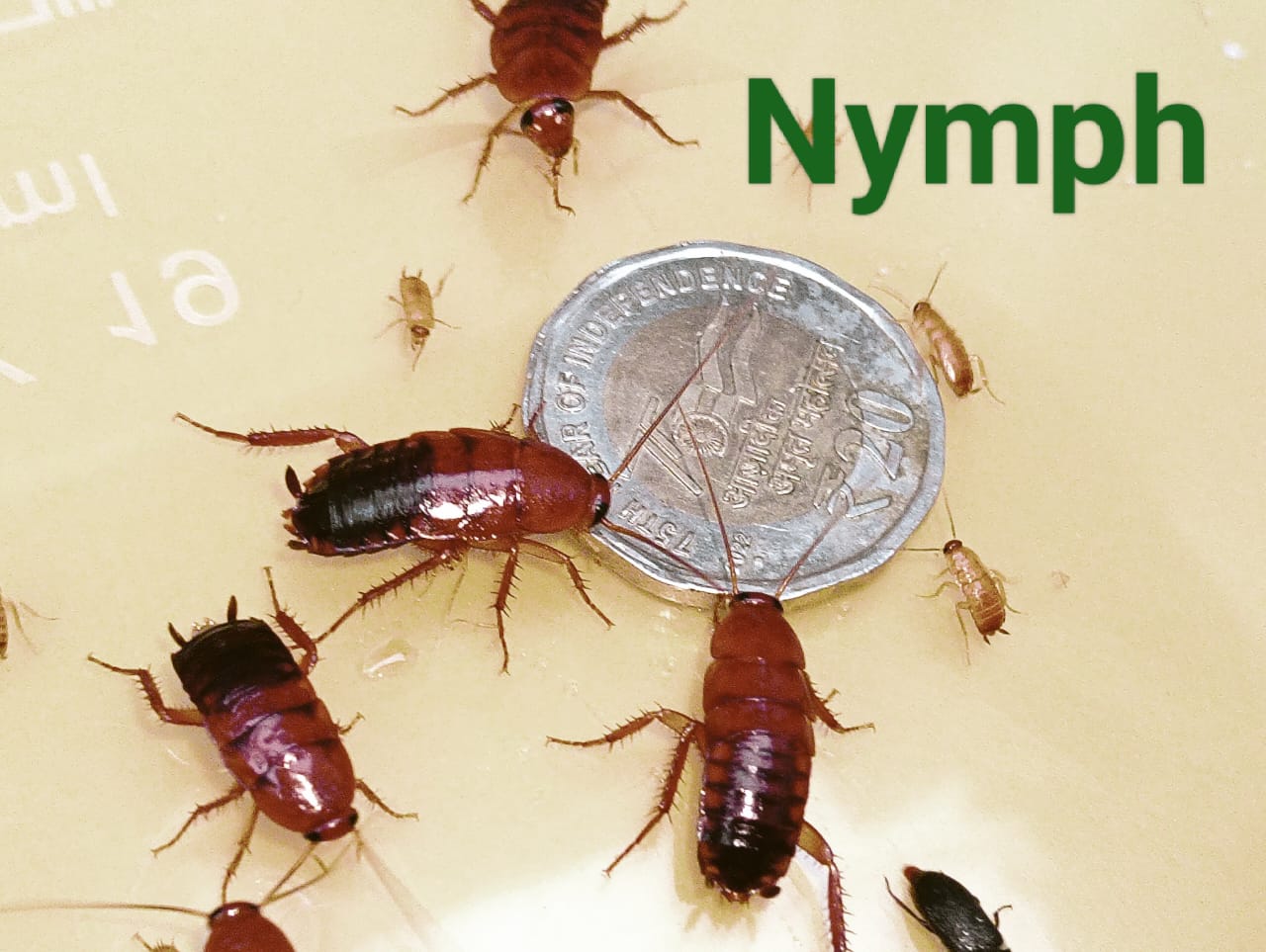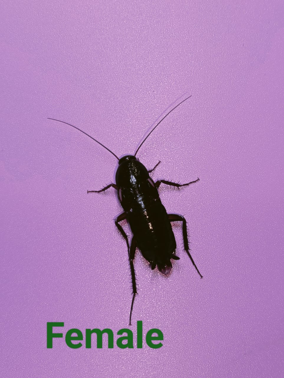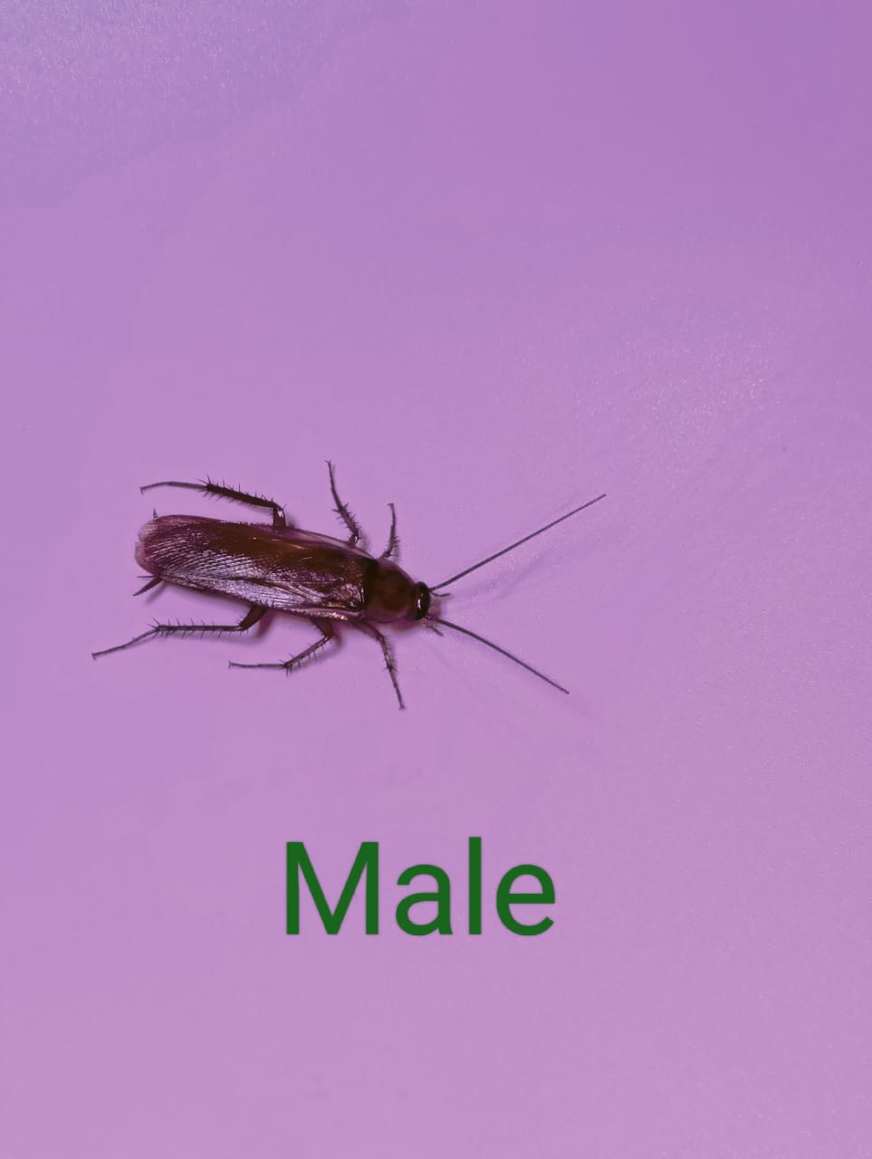 The Turkestan cockroach, Periplaneta lateralis (also known by its synonyms Shelfordella lateralis and Blatta lateralis), also known as the rusty red cockroach, red runner cockroach or simply rusty red, red runner,[5] or lat, is a primarily outdoor-dwelling cockroach native to an area from northern Africa to Central Asia. Adults measure around 3 cm (1.2 in) in length. Adult males are a brownish orange or red, are slender, and have long, yellowish wings which allow it to attract females and to glide.Adult females are dark brown to black, with cream-colored markings on the shield and a cream-colored stripe edging its wings; they are broader than males, and have short vestigial wings.Nymphs are brown in front, black on the rear, and are wingless.